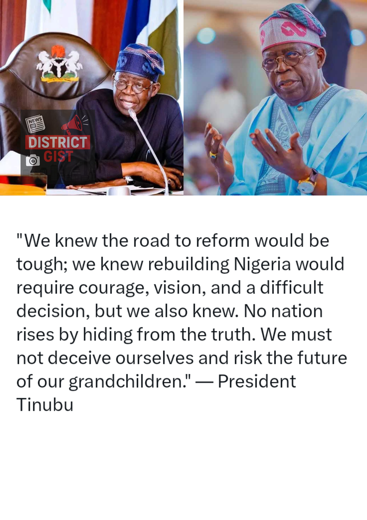 TINUBU SPEAKS ON REFORMS, URGES NIGERIANS TO FACE REALITY.