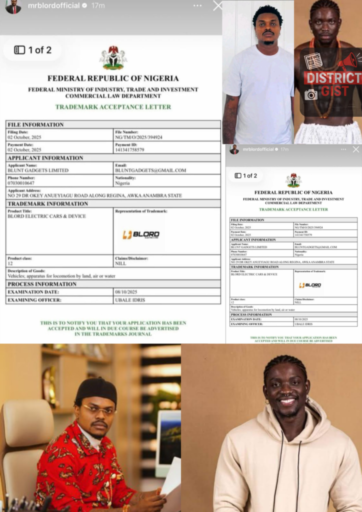 In a strategic move to protect his brand, Billionaire Blord has officially registered the trademark for “Blunt Gadgets”. This comes shortly after VeryDarkMan trademarked the name “Blunt”.