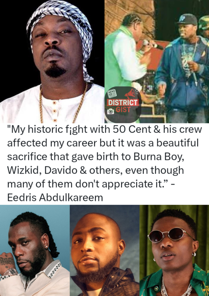 The Nigerian artist is acknowledging the challenges he faced, particularly his well-known clash with 50 Cent and his crew, which had a lasting effect on his career. Despite these setbacks, Eedris believes that his actions created opportunities for today’s biggest music stars, including Burna Boy, Wizkid, and Davido. However, he expressed disappointment that some of these artists have not fully acknowledged the role he played in paving the way for their success.