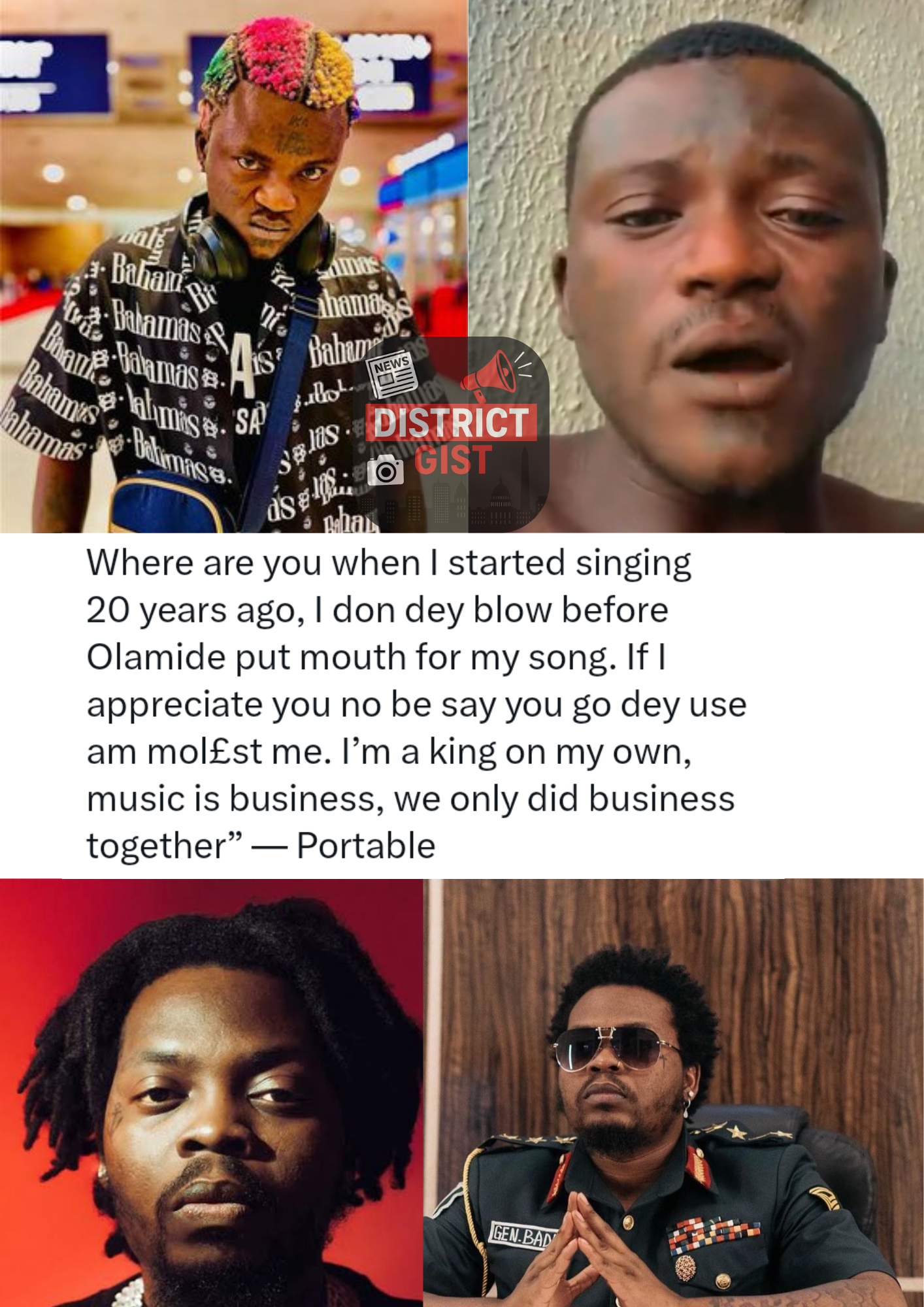 PORTABLE RESPONDS TO COMMENTS ABOUT HIS CAREER AND MUSIC INDUSTRY RELATIONSHIPS.
