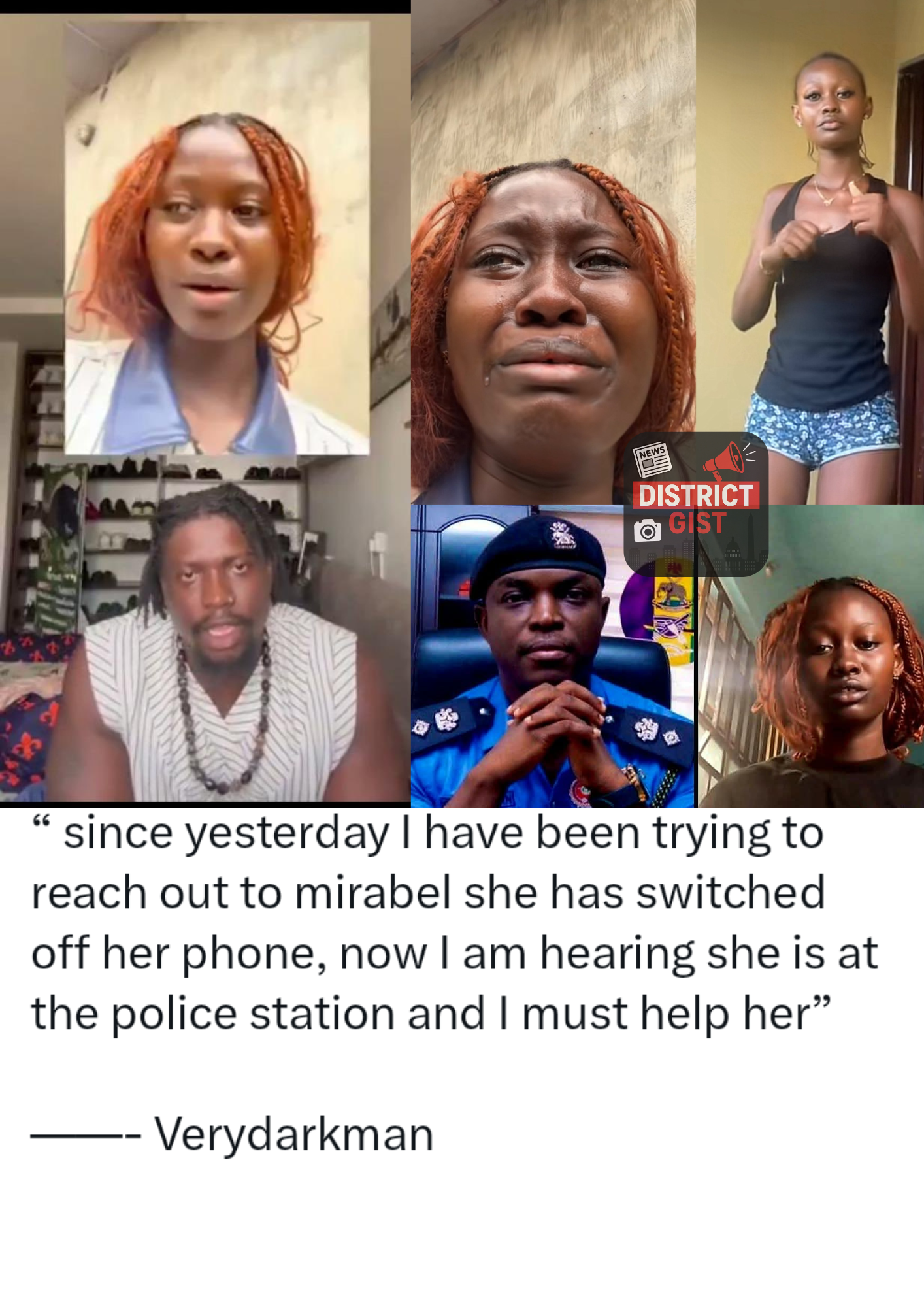 VERYDARKMAN EXPRESSES CONCERN OVER MIRABEL’S SITUATION, SAYS SHE’S AT THE POLICE STATION.